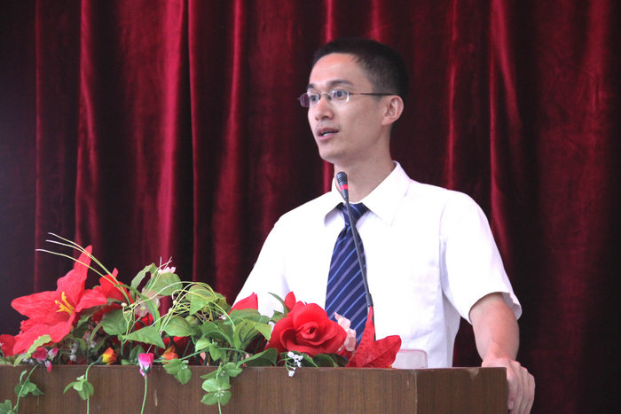 在老团员陈若邻同学宣布完新团员名单之后,老师们为新团员佩戴了团徽。新团员温卓霖同学带领大家在团旗面前进行了宣誓,表示自愿加入共青团,在以后的日子里勤奋学习,吃苦在前,享受在后。安可涵同学代表新团员发言。最后团委书记刘志伟老师作了总结讲话,鼓励同学们时刻铭记作为团员应该肩负的责任和义务,希望同学们牢记誓言,努力学习。