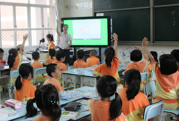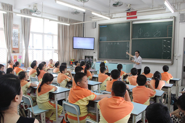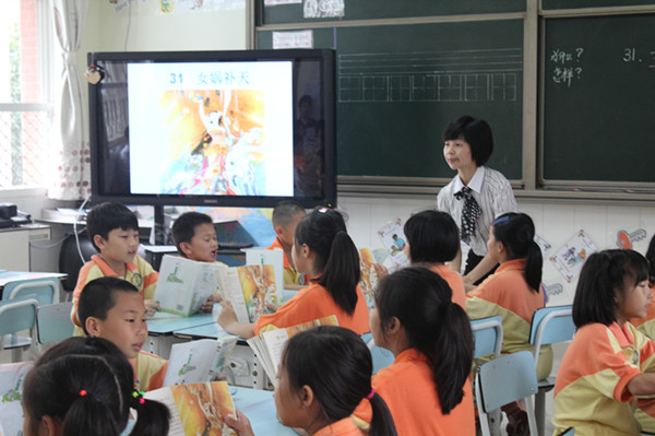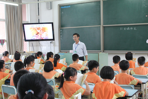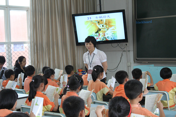 在三年级的教室里,焦肃英老师、赵娟老师、汤怀云老师共同上了《女娲补天》一课,展现了各自的语言魅力。课堂上三位老师采用多种有效的教学手法,借助多媒体手段,使学生在轻松愉快的氛围中掌握所学内容。家长们认真聆听教师声情并茂的课堂教学,幸福地看着孩子出色的表现,不时为孩子们精妙的回答爆发出笑声。还有的是爷爷奶奶来参加这次活动,老人带着花镜,坐在孩子旁边,一边仔细地听,一边认真地做着记录,好像又回到了美好的学生时代。在课堂上,老师们亲切地授课,学生们专注地听讲,有些课堂在互动环节时,家长们也与孩子们共同参与,收到了良好的教学效果。