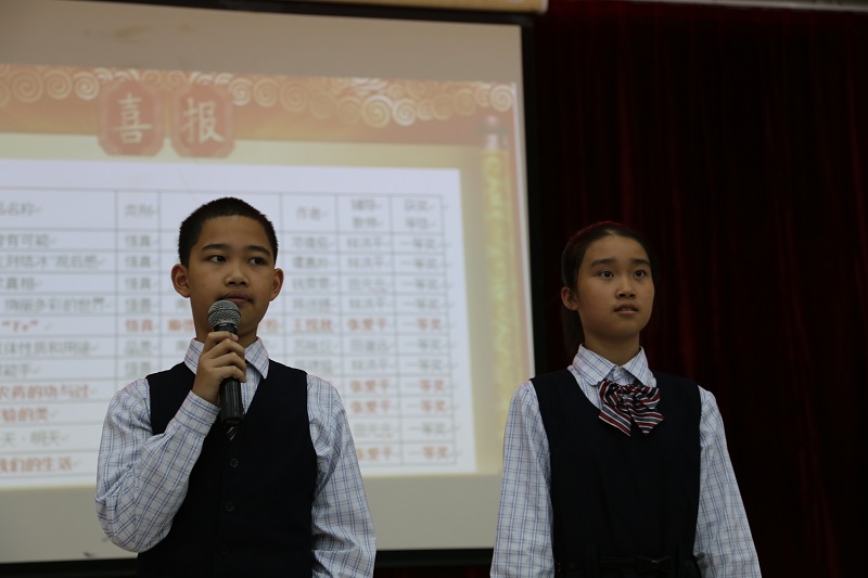 第一个环节是《我们的回忆》,这是一段视频,是六年级老师送给孩子们的礼物。冯旭红老师和罗燕梅老师在成百上千张照片中细心地挑选出了一百多张,由刘海涛老师精心制作成视频,记录了孩子们从一年级到六年级的点点滴滴。在视频中,孩子们找到了自己曾经的足迹,家长们看到了孩子的成长,快乐与温暖,瞬时洋溢整个会场。