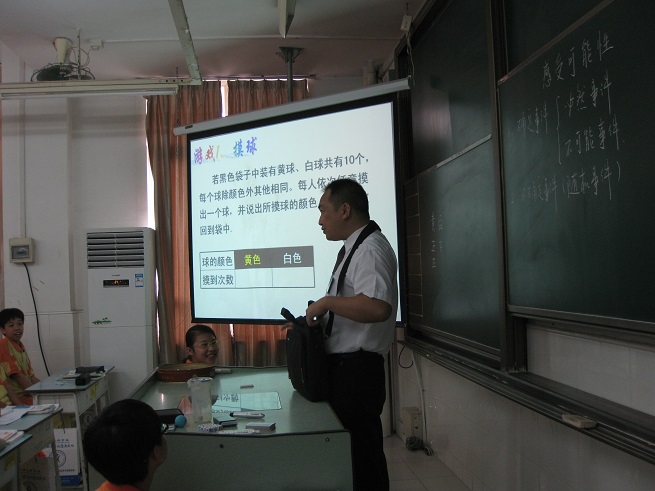 欧阳晃增老师在七(2)班向全体家长和学生展示了一节精彩纷呈的数学公开课。欧阳老师以《感受可能性》为课题,创设情境,不断深入,结合初一学生的年龄特征,抓住核心内容,娓娓道来,十分幽默有亲和力。学生参与面广,回答非常到位,整个课堂贯穿了培养学生自主学习能力的教学理念,充分体现了新课改的精神。