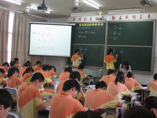 郑碧云老师在八(1)班上的公开课,课题是《分式的加减法》,分式的加减法是初中数学的核心内容,郑老师能够围绕本节课的教学目标层层铺开,知识环环相扣,步步深入。亲切的教态,深入的问题,充分调动了学生的思维和探究的热情,很好地体现了以学生为主体的理念。