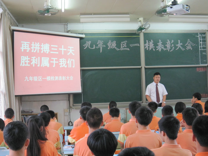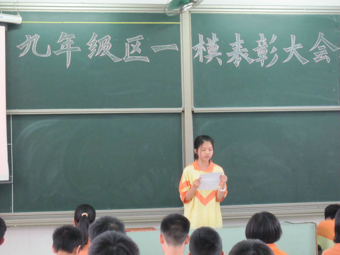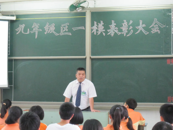5月17日下午,九年级区教学检测表彰会在九(2)班教室隆重召开,大会由年级组长吉正军老师主持。