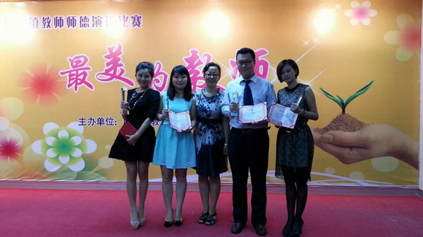 碧桂花城幼儿园张嫣老师的演讲以生动的事例,真挚的感情,质朴的语言,声情并茂地讲述了自己对师德的感悟,最终取得了全场最高分的好成绩,赢得此次比赛的特等奖。