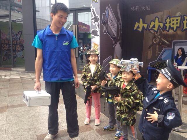 3月29日下午,国际小一班的孩子们聚集保利天玺,开展了“儿童小当家”活动。这是国际小一班家委会组会以来的第一次外出体验活动,意在让家长与孩子们更多的亲子时间,也是国际班体验课堂的延伸。在“儿童小当家”活动中,孩子们感受了情景式的各种职业体验。看,有的孩子穿上了消防服,手握消防水枪,正努力地救火呢!这边忽然有“邮递员”递了份报纸过来:“请收报纸!”嘿,看看那三个穿着迷彩服、手握机关枪的孩子是在干什么呢?哦,原来是“银行押解员”呢!可神气啦!那边妈妈们笑得合不拢嘴了。瞧,那边是孩子们给妈妈擦鞋呢!呵,看着妈妈笑眯眯的样子,孩子擦得更起劲啦! 此外,孩子们还体验了“建筑工程师”、“医生”、“警察”、“小记者”等职业。在体验中,孩子们不单了解了各种职业的特性,更在模拟情景中得到了锻炼。(苏泓元妈妈供稿)