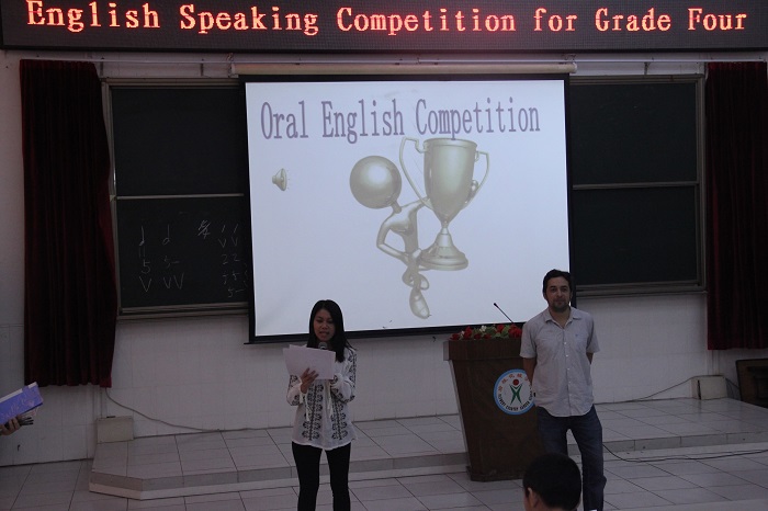 参加竞赛的选手是各班精心挑选的优秀学生,首先他们进行了30秒自我介绍,然后即兴看图讲故事,最后一个环节就是和外教互动。孩子们展示了自己良好的英语功底,外教Mr. Kirwan在点评时对他们的语音语调,语言的表达表示出极大的欣赏。