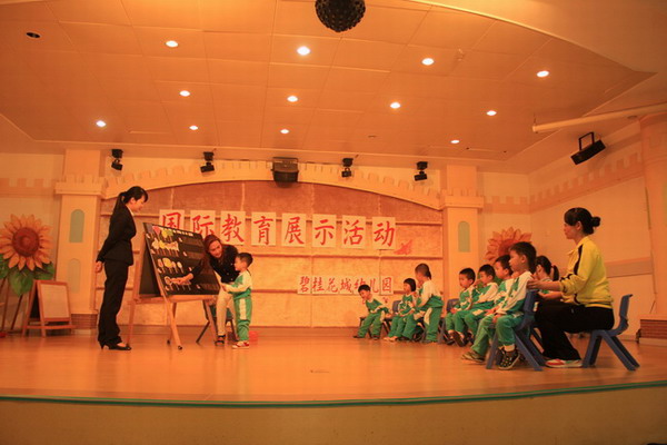 为了让家长更好地了解国际教育,了解国际班开展教学的情况,2014年3月28日下午,碧桂花城幼儿园开展了国际班英语教学展示活动。