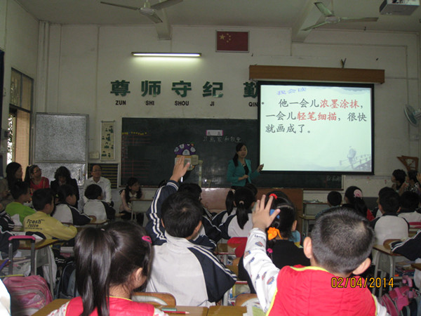 苏佩莹老师执教的是一年级语文下册《识字4》,这是一堂比较成功的识字课,很好地体现了潭村小学课堂教学研讨主题:“优秀学习品质点亮课堂”。在教学中,教师把握住了低年级识字教学的主要任务──识字、写字,把课文读通、读顺、读熟。并通过多种有效的方式,将这些任务落在实处。识字教学体现层次性,运用多种方式复现生字 ;注重引导发现,渗透学习方法的指导;注重培养学生的学习习惯,以“优秀学习品质点亮课堂”,其中苏老师的写字教学非常细致成为本课亮点之一,动笔前要求学生一边背诵规范写字姿势的儿歌,一边按照儿歌内容做动作调整写字姿势。