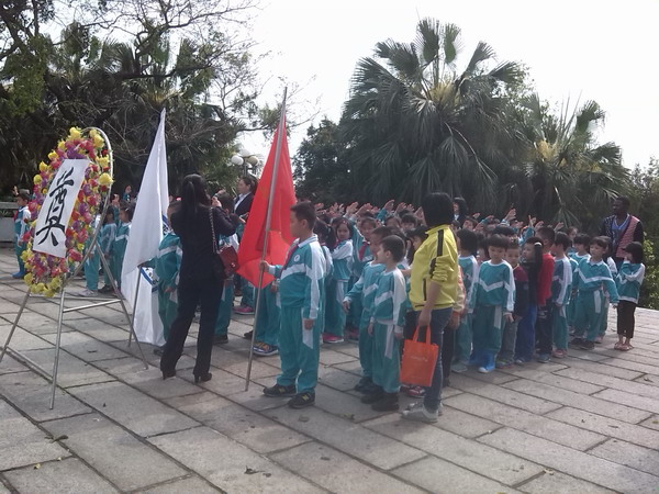 2014年4月3日,在这个雨后阳光的好天气里,碧桂花城幼儿园国际大二班全体小朋友和碧桂花城小学一年级的同学们一起乘坐碧桂园的大巴车,前往顺德西海烈士陵园扫墓。