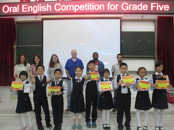 Last Friday, the fifth Grade students had an oral English competition. We invited 6 foreign teachers to be the judges. They are Mr.Kirwan, Mr. Felix, Mr. Steve, Ms Grace, Ms Tamara and Ms Lenna.