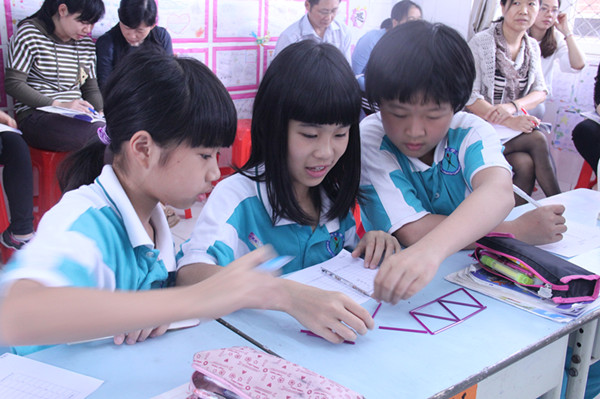 蓝老师以幽默风趣的教学风格,给学生营造民主、互动、开放的学习氛围;通过学生动手摆小棒、画图形、填表等活动整合信息,为学生积极思维提供了学习资源。而本节课的亮点之一在于彰显学生解题思路的多样性、思维的清晰性和表达的流畅性,印证了探究规律是没有固定的公式,也没有固定答案。俗话说:“没有做不到的,只有想不到的”。这种强调课堂交流的平等性、多样性和创造性,也是我们数学科组课堂研究的重点,今后有更多这样的课堂展现将是我们努力的方向。 (文:王彩玲)