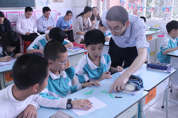 本周四,中年级组开展了一节探究图形规律的评优课:在蓝老师的组织下,学生围绕着三角形图形的不同摆法进行了两组探究活动。课堂上气氛活跃,师生关系融洽,学生的探究热情高涨,而学生流畅的表达、活跃的思维、大胆的质疑都给听课的老师留下了深刻的印象。