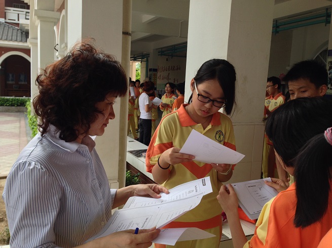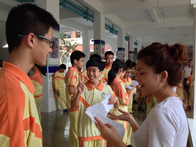 活动内容主要分成两个方面,首先是学生对测评老师做出简短的自我介绍,在这个环节中,同学们竭尽所能,充分挖掘自己的个人特色,力求在短时间内给老师留下深刻印象。接下来同学们两个一组,针对手中卡片上的信息做对话练习。这是本次英语角活动的重头戏,因为这是KET的口语测试题,卡片上只有关键词,需要同学们完全靠自己已有的英语能力来表达。那些完美的口语表达总能引来大家的赞美。