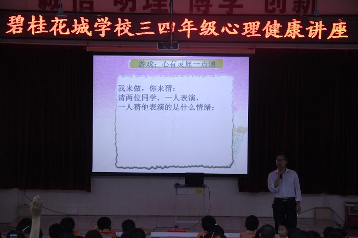 4月25日上午,碧桂花城学校三、四年级举行了以“调控情绪”为主题的心理健康知识讲座。