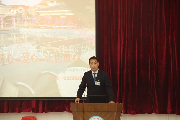 为帮助家长对孩子小升初择校有更好的认识,七、八年级组长代天良老师也在会上作了发言,他发言的主题是“用心-精心-爱心-让您放心”。代老师结合近几年我校初中部的发展情况,介绍了几大办学优势,有事例,有数据,图文结合,家长们直观地领略到了我校初中部的精彩。