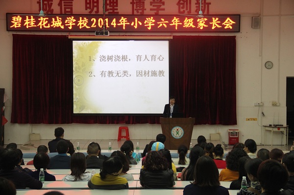 2月27日晚上,碧桂花城学校领导、初中部教师代表以及六年级全体教师与小学毕业班学生家长举行了一次家长会,在会上双方进行了真诚地沟通,为我校六年级毕业工作奠定了坚实的基础。