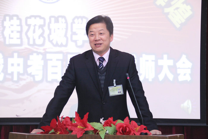 最后贺校长的讲话,把大会的气氛推向了最高潮。贺校长在讲话中,分别从“目标”“态度”“方法”三个方面做了重要指示。他要求同学们一定要有自己的中考目标,要“树立远大理想和必胜的信念”;在学习中“要有吃苦耐劳的精神和顽强的毅力”,要咬定青山不放松;在学习中还要苦干加巧干,学会学习,学会生活,校长的讲话深入浅出,激情洋溢,每一句话都振奋着在场每一个同学的心灵。