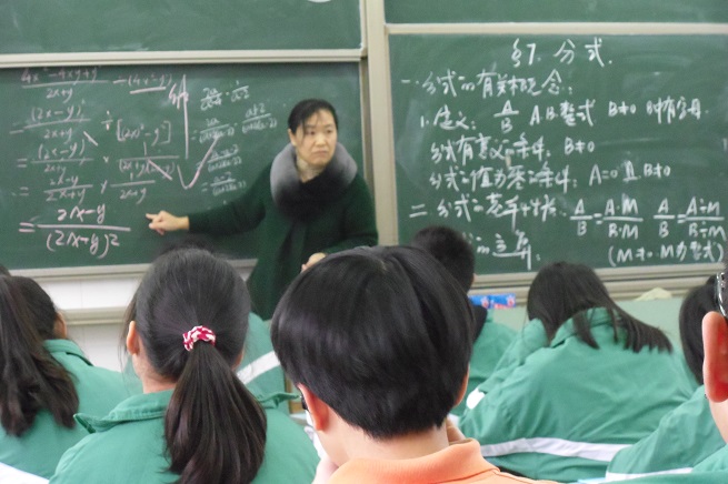 魏转云老师展示的也是一节复习课――分式,课堂设计合理,针对性强,围绕相关的知识点展开,重点突出,难点突破,每一个练习都能解决一类问题,达到了触类旁通的效果,注重学生的动手练习,给学生足够的时间,老师讲的很少,但都起到了点睛的作用。中考链接针对佛山中考,让学生及早接触新考法,并在课堂中落实。