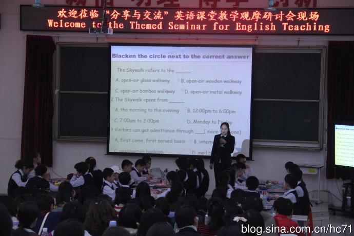 谢梅嫦老师献课主题是The Skywalk,课型阅读教学,授课对象五年级国际班学生。首先孩子们进行了News report,对近日或身边的新闻进行了精彩的描述,而后进入阅读教学环节。依据对文章的理解,孩子们在文中找到对应习题的答案,掌握答题技巧,并在小纸条上提出问题,小组间合作互助,分享解答。整堂课孩子们展示了优美流畅的口语表达能力,活跃积极的思维,显现出深厚的内功,更凸显我校国际教育理念下孩子们勇敢,积极,欣赏,包容,合作的品格,不一样的国际视野,这是长期教育内化的结果。