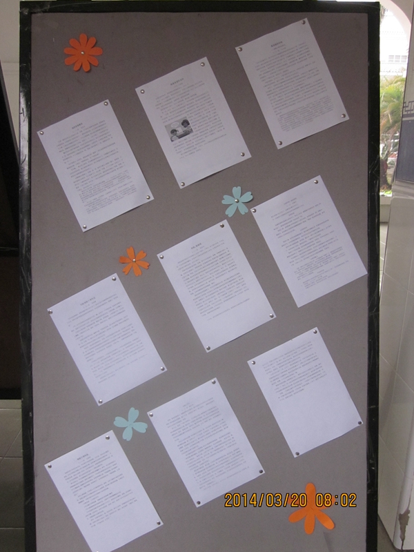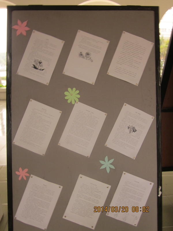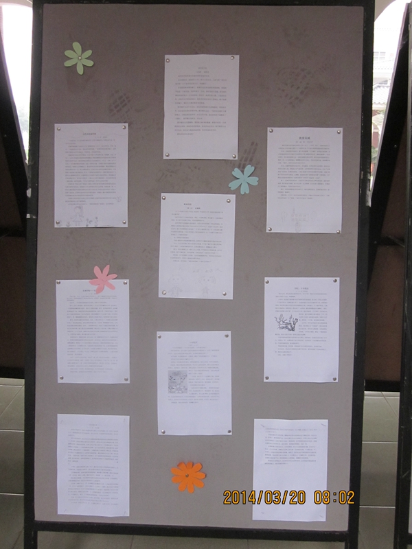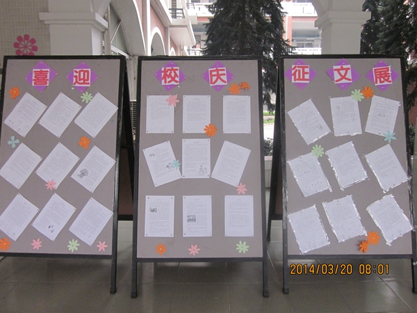 校庆十周年到来之际,花城学子以自己喜欢的方式表达对母校的挚爱之心。语文组的老师们组织三到八年级的学生参加了“爱我母校”征文活动。学生们虽然文笔稚嫩,但感情真挚,字里行间饱含着对学校的祝福、对老师的感激、对同学的喜爱和对校园生活的赞美之情。