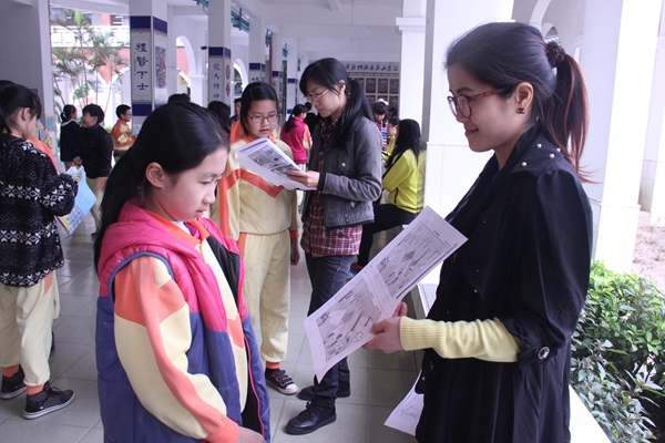 The teachers came, all students lined up quickly and got ready for the test. I didn’t think it was a real test because it was very noisy, some students ran in the hall, and some were talking happily. But we all enjoyed the activity.