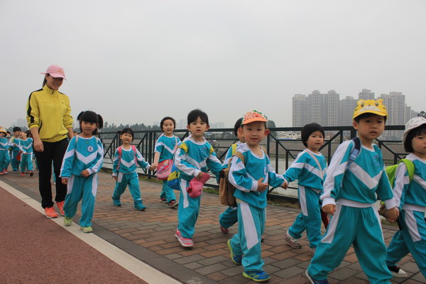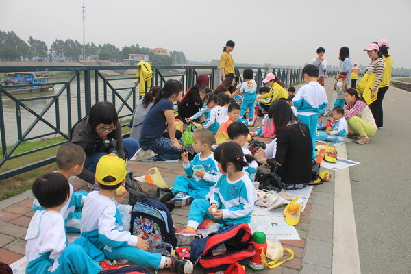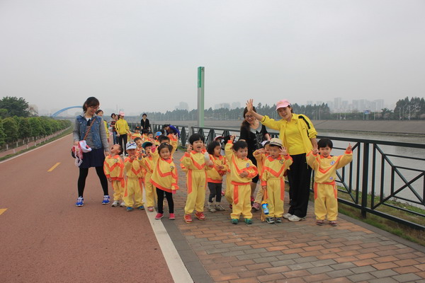 本次远足路径从幼儿园到碧桂花城河堤绿道约1500米,时间控制在1小时内。孩子们表现得忙碌而兴奋,背着背包,手拉着手,在老师的带领和家长义工的协助下,大家兴高采烈地出发了!