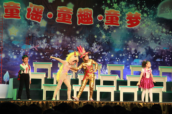 8:30我们聚集在综合馆,舞台上的彩灯亮起来了,随着柔美的古典音乐,学生们在美妙的情景中开始诵读《三字经》,朗朗的书声把我们带入了诗情画意之中。随着一段欢快的儿童音乐,台上的孩子与台下的孩子一起读起了当代儿童诗歌,那天真烂漫的表演和清脆的童音构成了一幅美妙的画卷。孩子们还诵读了《弟子规》,以及爱国诗歌,天籁般的声音与他们自然大方的表演给每位观众留下了深刻的印象。在这个冬天的早晨,孩子们诵读着经典诗文,开启着他们童年美好的梦想,这一首首经典的诗文如甘泉般润泽着一株株幼苗,我想,这声音是美妙的,而这样的成长也是诗意的。让孩子在最初的童年诵读这些温润如玉的文字,真好!