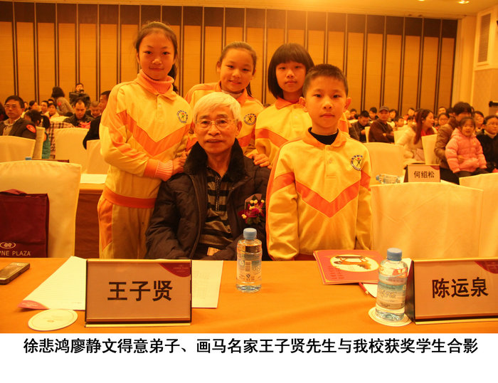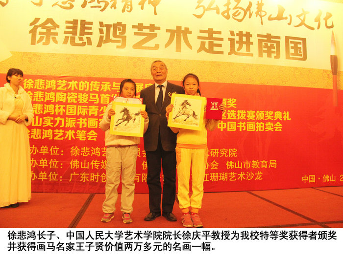 我校获得特等奖的同学接受佛山电视台、佛山等各大媒体的专访并获得徐悲鸿廖静文的得意弟子画马名家王子贤价值两万多元的名画一幅、被推荐到北京总部组委会参加明年在香港举行的“徐悲鸿杯国际青少年儿童书画比赛”,与美国、加拿大、香港、澳门等国家和地区的青少年儿童进行书画艺术交流。