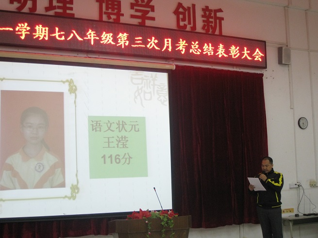 七八年级第三次月考表彰大会隆重举行