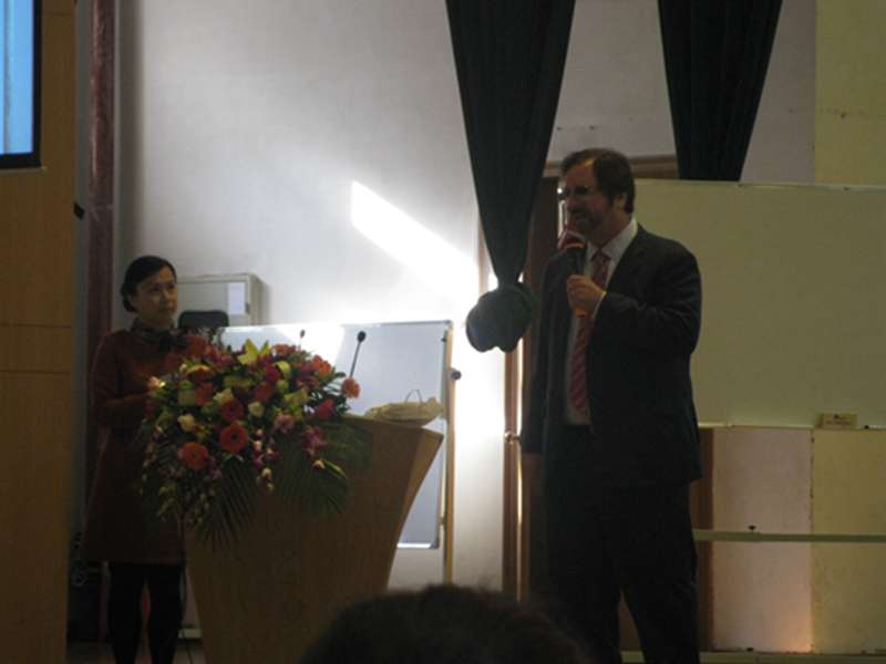 随后,雷夫跟在座的老师们娓娓而谈自己的教育心路历程,分享发生在56号教室里许多不可思议的故事,揭示了从贫民窟里出来的“问题孩子”最终个个热爱学习,变成谦逊有礼、诚实善良的学生的秘密,这与“道德发展六阶段”理论有着紧密关系:第一阶段,我不想惹麻烦――靠惩罚起作用;第二阶段,我想要奖赏――靠贿赂起作用;第三阶段,我想取悦于某个人――靠魅力起作用;第四阶段,我要遵守规则――靠自律起作用;第五阶段,我能体贴人――靠仁爱之心起作用;第六阶段,我奉行既定的准则――靠境界起作用。此时,我们才真正读懂了奇迹背后的教育理念----着力于孩子的品格培养,激发孩子对自身的高要求才是成就孩子一生的根本。整个报告会,充满爱意、睿智和真诚的雷夫演讲,激情、本色和生动的学生活动视频画面,平等、谦虚、诚实的对话场景,温暖和感染着每一位听众的心灵。满场的热烈的掌声、激动的泪花便是中国老师对雷夫老师的最热情的赞赏和最诚挚的感谢!