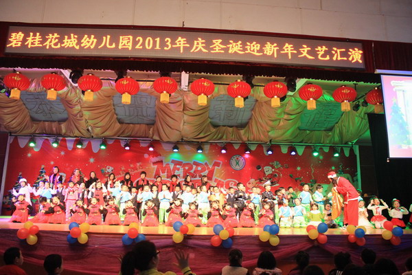 2013年12月24日,碧桂花城学校综合馆人声鼎沸,歌声、笑声、掌声交融在一起,汇成了一片欢乐的海洋。碧桂花城幼儿园大班级组的师生、家长欢聚在一起,举行一年一度的“庆圣诞、迎新年”文艺汇演。