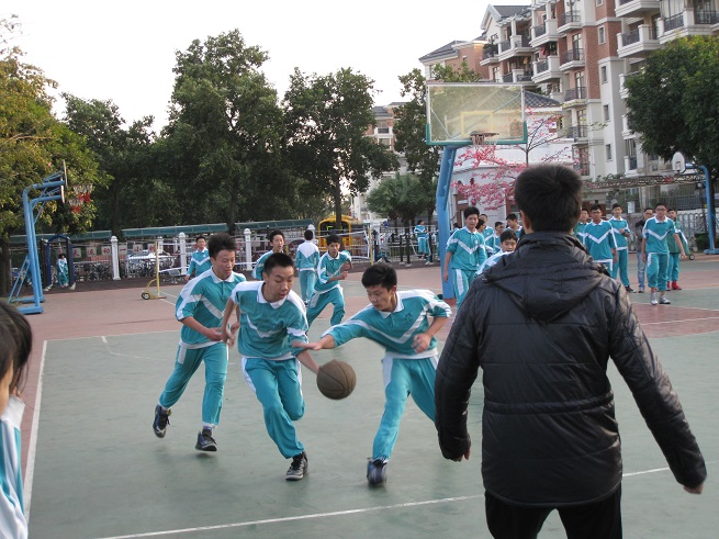 11月28日下午,蓝天白云,秋高气爽。4点20分,我校八年级在学校篮球场举行了中学生男子篮球友谊赛,经过紧张激烈地角逐,八(1)班代表队以33:31的比分战胜了八(2)班代表队。