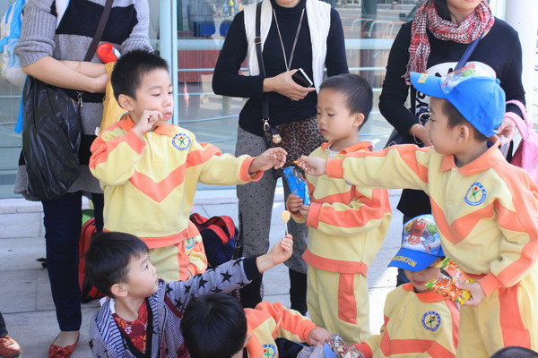 2013年11月26日早上,天气晴朗,伴有微风,碧桂花城幼儿园中班、大班年级组举行了一次从幼儿园到花卉世界文化广场的远足之旅。