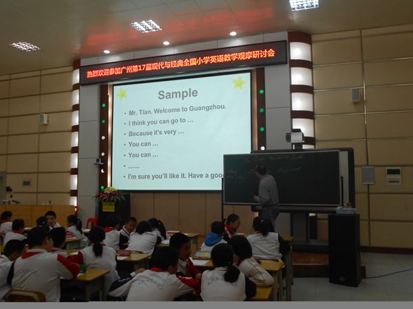 12月1日上午8:30-11:30,我们一行四位英语老师参加了在广州华南理工大学附属小学举行的第17届现代与经典全国小学英语教学观摩研讨会,听了田湘军老师的课《The Science Museum in London》和他的讲座,我们感受他的课:“像一汩清泉深深地沁入心脾,田老师以他的人格魅力,纯正的发音、地道的表达、流利的口语,幽默诙谐,扎实的基本功,高深的课堂教学睿智、充满激情与爱心的教学艺术,打动了每个上课的孩子、征服了在场的每一个听课者。” 他的这节课是以一首耳熟能详的“Twinkle, twinkle, little star ”引入,通过一颗大的和小的星星来玩猜一猜游戏,让学生选择,进而展开对博物馆的认知,然后介绍了故宫博物馆,黄河博物馆,西湖博物馆和南京博物馆,紧接着田老师把自己在巴黎罗浮宫的照片展示给大家看,让学生对世界著名的巴黎三大奇观蒙娜丽莎,胜利女神和断臂维纳斯有初步的认识,把本来有点boring的知识性文章演绎得妙趣横生,他的教学活而有序,收放自如,使每个学生在参与中体验到成就感。