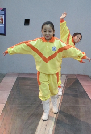 我继续往前走,映入眼帘的是一座“电梯”。我仿佛进入了仙境,仙境里极其安静,只听到潺潺的流水声,看到了可爱的海豚,我用手轻轻地托着它的下巴,电梯还在不断移动,好像要带着我进入另一个天堂。小珂摇摇我,我这才意识到原来这是一幅画。我的动作还保持着,小珂的相机才不想错过呢!为我留下了这美好的瞬间。(五(1)班 陈卓诗)