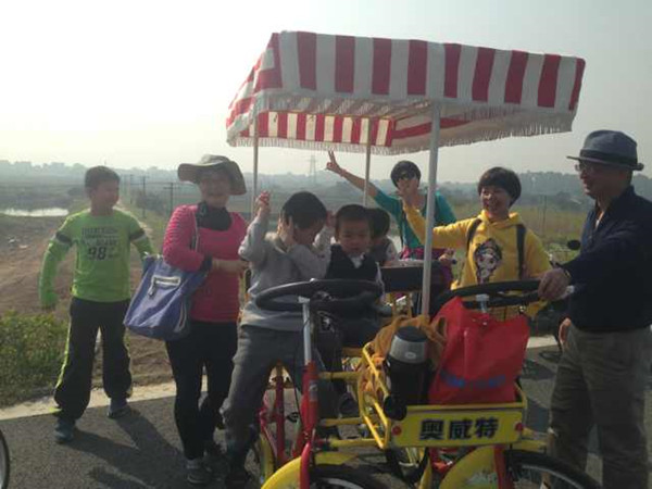 经过一个小时的车程,我们到达了南海九江海寿沙,我们要坐船去对面的小岛,今天我们的目的地就是那里。大轮船载着我们飞快驶向对岸,船一靠岸,我们手拉手朝岸上冲去。码头上有很多单车供游客租用,因为我们人多,所以决定租一辆四轮的大自行车,呵呵,开心的环岛旅行开始啦!啊,岛上的风景真美啊!路边盛开着无名的小花,漂亮的蝴蝶在花丛中飞来飞去,一排排绿树正张开双臂欢迎我们的到来呢。我们把车骑进了小路,走进了乡村。乡下的人们真勤劳,有的在砍柴,有的在收割,还有的在拉着牛耕地。我不禁自言自语道:“农村真美呀,农村的生活多悠闲啊。”