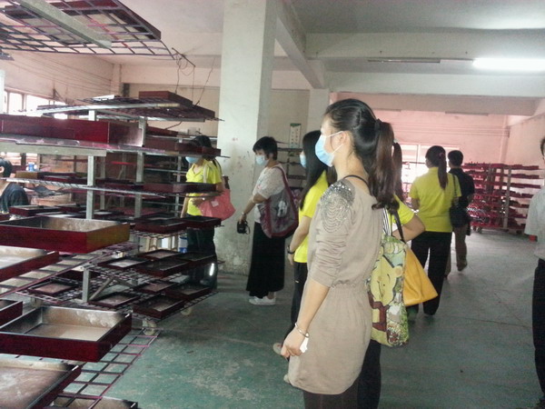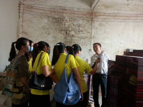 校车经过一个小时的行驶,老师们来到了位于佛山市南海西樵科技工业区福?Z包装公司,公司负责指导参观的人员早已等候在大门口。教师们首先在公司办公大楼前集合,听公司负责人介绍公司概况以及当前生产的基本情况,然后大家在技术人员的引导下进入生产车间进行参观。从工人把木板用精密的木工机器切割、打磨、喷漆、抛光、包装等等工序,最后制作出包装盒、精美雪茄盒、首饰盒、化妆品盒、珠宝柜、手表盒、烟酒盒等木制包装工艺。教师们循着一道道工序,观察一个个流程,看得认真仔细,有些老师还不停地向技术人员询问不明白的问题,并得到满意的解答。老师们被繁忙的生产线、轰鸣的机器声、爱岗敬业的工人们感染着、感动着。一个小时的参观学习,使大家亲眼目睹了包装盒现代化生产的全过程,深切感受到现代化企业的伟大力量和创造精神。