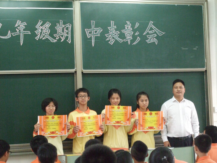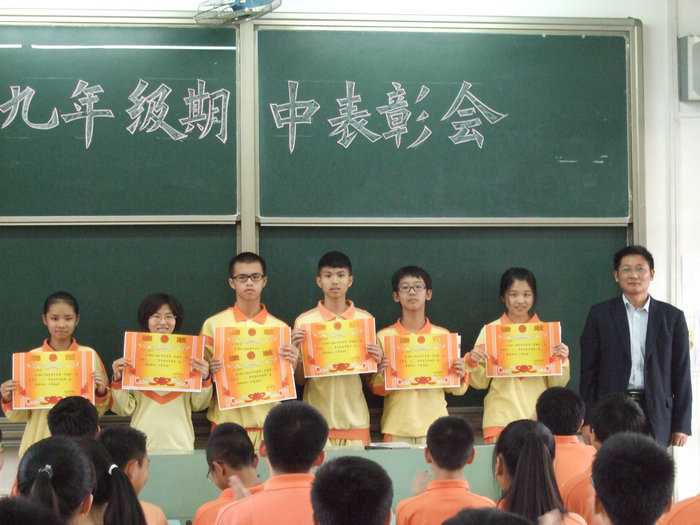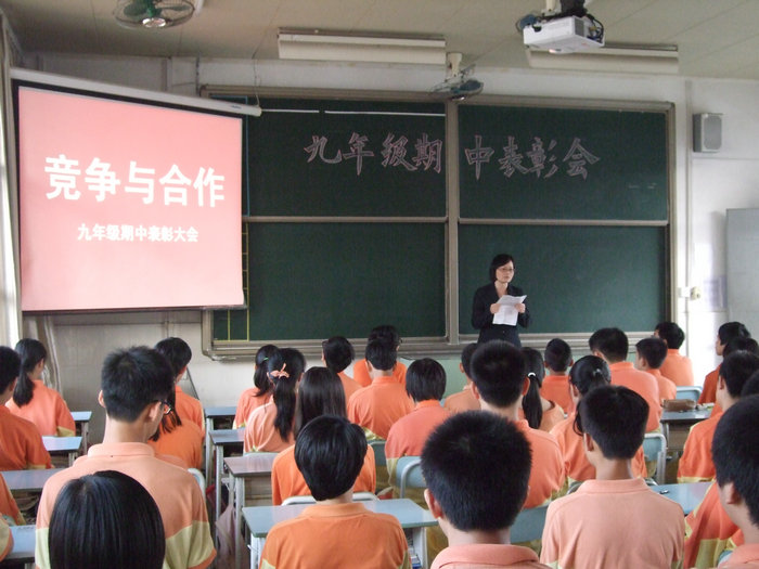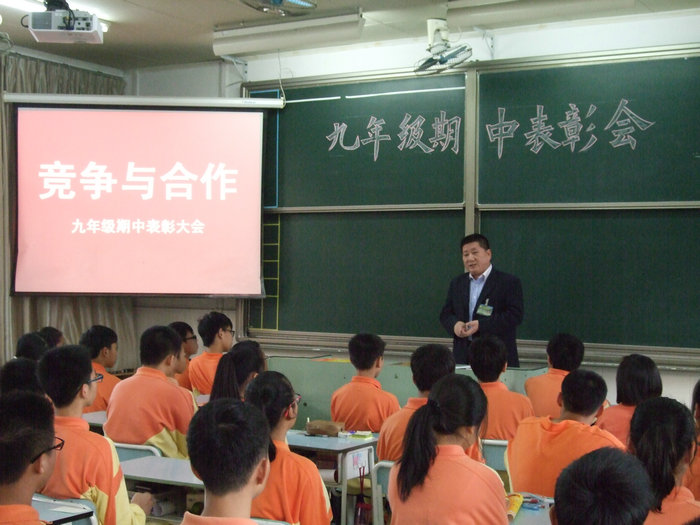 11月15日下午第七节课,九年级全体师生在九(1)班教室召开了期中检测总结表彰大会。本次会议主题为“竞争与合作”,由九年级级长吉正军老师主持,谭加文校长助理出席会议并作了重要讲话。