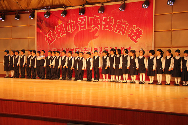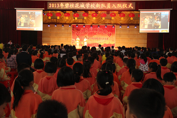 2013年11月15日下午4:20,碧桂花城学校新队员入队仪式在综合馆隆重举行,一至三年级全体师生参加了此次活动,一年级四个班的家长见证了这个神圣而光荣的时刻!