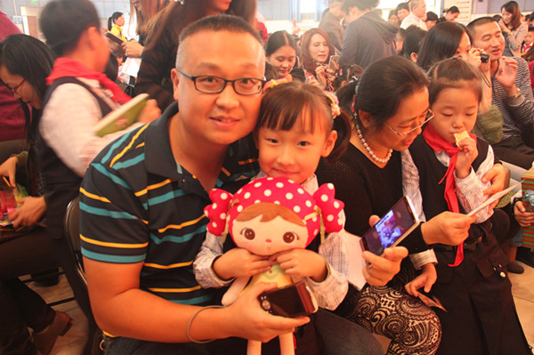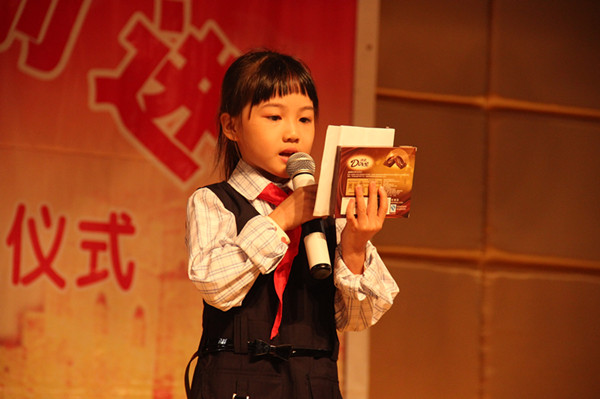 为了表达新队员喜悦的心声,一(4)班莫可雯同学代表所有新队员发言。接着在梁文君老师动情的话语中,新队员们将自己亲手制作的感恩卡献给了父母,家长们也把礼物送到了孩子手里,浓浓的亲情感染了在场的每一个人,最后四位家长主动带孩子上台分别表达了对学校的感激之情,对孩子在花城学校取得的进步而感到高兴!(文:赵娟 / 图:张峰)