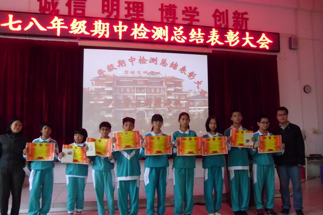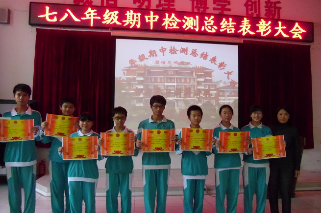 随后,年级组对各类竞赛优胜者以及在本次期中检测中表现突出的同学进行了表彰,颁发了奖状和奖品。
