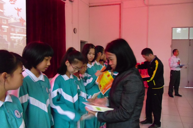 在热烈的掌声中,七年级学生代表曹小倩和八年级学生代表龙?h分别介绍了自己的学习经验,他们号召同学们一起追寻梦想,不断努力,在下一阶段的学习中,争创佳绩。