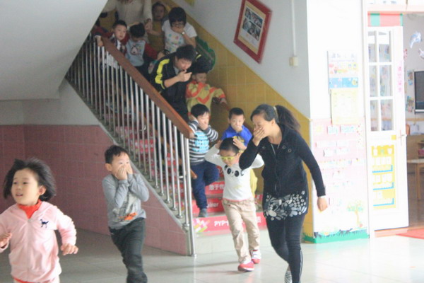 11月19日下午3:20,消防演练正式开始,随着消防警报声,只见小朋友们在老师的指导下,捂着口鼻快速有序地从两个楼梯逃生,在老师的带领下安全的疏散到空旷的操场上,整个演练过程紧张有序。