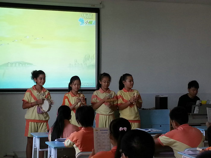 梁文君老师以一名“导游”的形式带同学们到内蒙古去感受大草原风光,了解大草原上牧民的生活习惯,蒙古族舞蹈等。在学习歌曲上同学们边唱边为歌词配上舞蹈动作,非常活跃。把这首欢快的歌曲《我是草原小牧民》自豪地表现出草原小牧民那种喜悦的心情。最后还让同学们了解来自内蒙古大草原的“呼麦”唱法。进一步了解我国内蒙古的民族音乐风格!