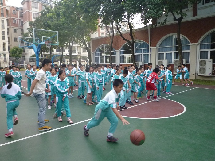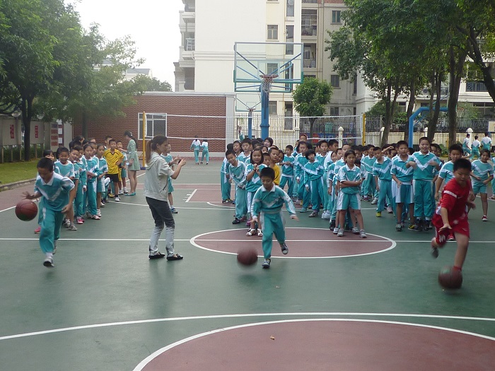 为丰富四年级学生的校园生活,增强学生身体素质,培养学生积极参与锻炼的好习惯,增进各班同学之间的友谊、凝人气、聚力量,2013年10月18日星期四,四年级全体学生在学校的小篮球场举行了趣味运球接力比赛。