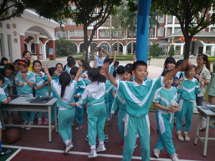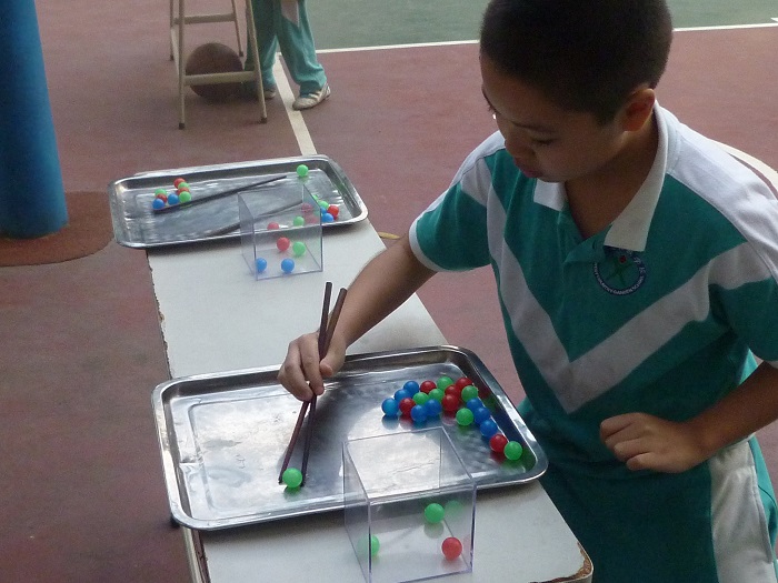 经过一轮的你追我赶,最终由四(2)班的同学以最少的时间把盘子内的小球全部夹到正方体盒子内,成为这场趣味运球接力赛的第一名。看!同学们意犹未尽,大家都很期待下一次的年级组活动呢!
