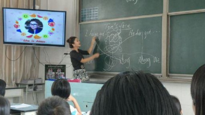 10月22日上午,碧桂花城学校举行校内评优课暨陈村镇小学英语观摩课活动。今天上课的老师是三年级陈坚老师。陈坚老师这节课主要是复习 “Unit 2 The Pirates and the Parrot”的内容。陈老师用一首“Head and shoulder”的歌曲引入课堂。活泼欢快的歌曲,加上学生与老师的生动的肢体语言,一下就活跃了课堂气氛。歌曲末尾加上陈老师自创的两句韵文,更是妙趣横生。接着陈老师让学生自由说出本单元的反义词组,并通过Sharp eyes 复习了形容词短语。接下来,她用娴熟的简笔画简单几笔勾勒出一个头像,自然地引导学生说出了“have got, has got”的句子。老师用自己的照片,让学生讨论老师,引出谈论自己的家人;听音猜不同的卡通人物等这些跟学生生活相关的活动,复习了Unit2的单词句型。这些活动让学生很感兴趣也充分调动了学生课堂学习的兴趣和积极性。同时老师也设计了各种笔头练习,活动与笔头练习相结合,学生在快乐中学习也扎实地掌握了本单元的知识。陈坚老师幽默的言语,精心的教学设计,流畅的简笔画及花城学子流利的英语口语给听课老师留下了深刻的印象。