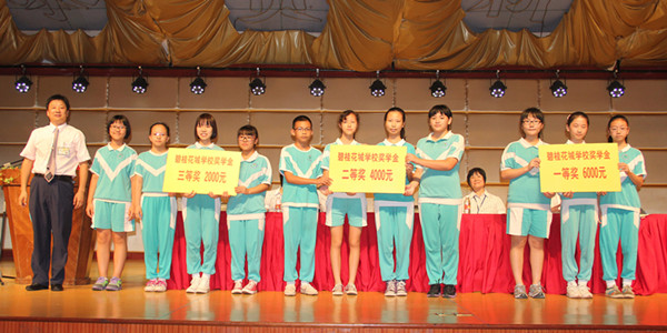 最后颁发的是小升初奖学金,任盈、范少雯、吕灏晴三位同学分别获得6000元奖学金;林泳诗、罗芊曦、陈晓淋、苏霖生四位同学分别获得4000元奖学金;梁钰然、黄海宁、李贝星、刘思瑶四位同学分别获得2000元奖学金。