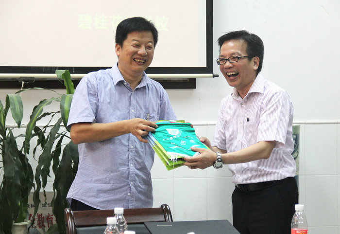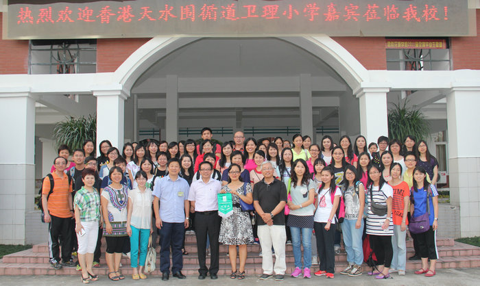 8月28日下午,装修一新的碧桂花城学校迎来了五十多位贵客,他们是来自香港天水围循道卫理小学的校长与五十多位教师,贺校长、束校长和国际班的老师们早早迎候在学校的大门口,客人们一下车,就被学校优美的环境和老师们热情的问候感染了。我校与循道卫理小学的交流活动已经开展了好几次,两校之间的交流活动特别成功。这次客人们来我校除了参观我校的校园环境建设,更重要的是了解我校的发展历程,学习我校成功的办学理念和管理方法,加强教师之间的交流与学习。