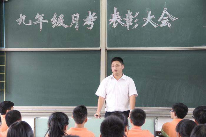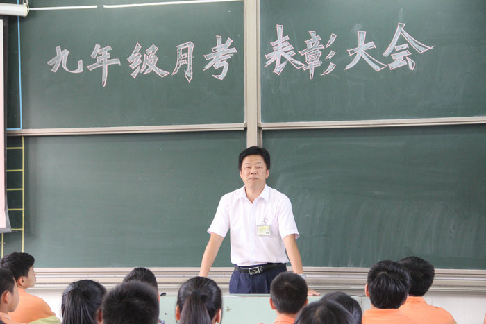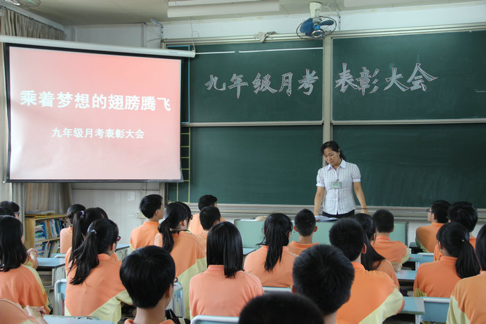 9月6日下午第七节课,九年级全体师生在九(1)班教室召开了第一次月考总结表彰大会。本次会议主题为“乘着梦想的翅膀腾飞”,由九年级级长吉正军老师主持,贺校长出席会议并作了重要讲话。会议气氛热烈、鼓舞人心。