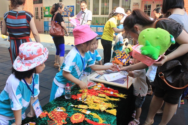 “爱心超市”是碧桂花城幼儿园双语中班的孩子们根据他们的领导才能课程《超市》延伸的一个大型社会性体验活动。为了开展好此项活动,他们早早就开始准备了,在预热阶段的时候,老师带领孩子们参观了花城会所超市,亲身体验了如何自主购物,了解了超市物品是怎样陈列的,超市里有哪些工作人员,他们都是干什么的等等;在策划阶段时,孩子们讨论了如何开办超市、竞选了超市工作职务、设计了自己的工作牌、设计了超市门面、宣传单等等;中班组还发动家长的力量,召开了超市活动的家长筹备会,由家委会带头,共同收集义卖物品,还有的家长主动来到幼儿园,制作义卖的手工。本次“爱心超市”所得的盈利将全部作慈善用途。